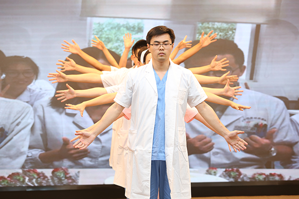 活动在一首激昂的无伴奏合唱《我爱你中国》中拉开帷幕,表达了医务人员的爱国之情。