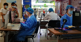 在门诊,院内志愿者在院内医护老师的带领下,为大家提供核酸检测服务。各个科室都积极配合,排队有序,遵循分时间段进行核酸检测。负责核酸检测工作的老师们,和蔼可亲,关心志愿者,整个氛围团结一致,认真严谨完成各自任务。