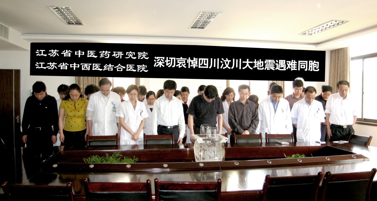 5月19日下午2:28分,江苏省中医药研究院的干部职工深切哀悼四川汶川大地震遇难同胞。愿死者安息,生者安好。