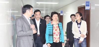 11月4日,省卫生厅党组书记王咏红在副厅长兼省中医药局局长陈亦江、办公室主任戚兴锋、中医综合处处长朱岷、中医医政科教处处长孙志广陪同下来院视察。