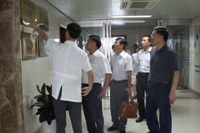 8月15日,栖霞区区长邢正军、副区长秦亚平在区政府办公室主任张农、区卫生局党委书记陈志平、副局长汪厚忠等陪同下来我院视察。