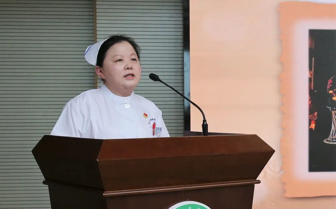 首先代表院领导班子向护士及其家属致以节日的问候。她指出2021年正值中国共产党成立100周年,在党和政府的关心下,中国护理事业经历百年蓬勃发展,凝聚数代护理工作者艰苦奋斗、无私奉献的心血。过去的五年,我院在护士队伍建设、优质护理服务、护理质量安全、信息化建设、护理科研等方面取得长足的发展。希望全院护理人员传承红色基因,做勇于奉献的南丁格尔人,从严从实抓好疫情防控,健全护理管理体系,加强部门分工协作,加强护理人才队伍建设,提升护理队伍和水平,积极开展科研创新,提高中医护理水平,加强护理信息化建设,助力服务质量提升。